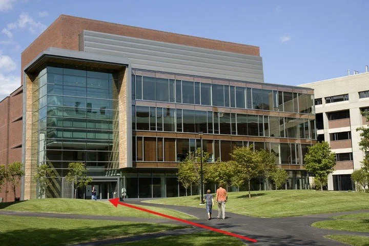 Following navigation you will arrive at one of two entrances to the Northwest Building (see below). Whichever way you arrive, take the elevators down to B4!